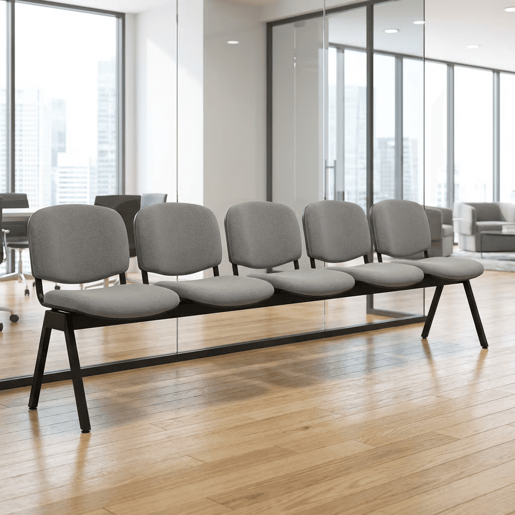 Estructura: Acero tubular rectangular de 1 1/2" X 3", calibre 16. Asientos y respaldos de perfil redondo tubular de acero ponchado con travesaños separadores tubulares redondos de acero, con acabado de pintura epóxica (electrostática) color negro mate.1 Respaldo y Asiento: Hule espuma laminado flexible con densidad de 22 kgs/m3 en el respaldo y 24 kgs/m3 en el asiento, con alta resiliencia.23 Tapiz: Tapizada al color de elección del cliente de toda su colección de tapices. Resistencia: Peso sugerido de 450 kgs.