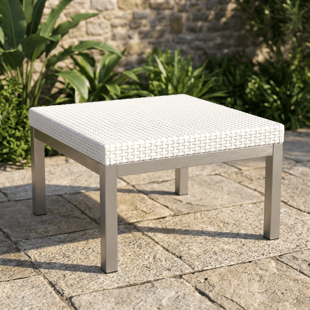 Mesa Russ OHM-7022-C2 con estructura robusta de aluminio y cubierta de copolímero de polipropileno para uso interior o exterior.
