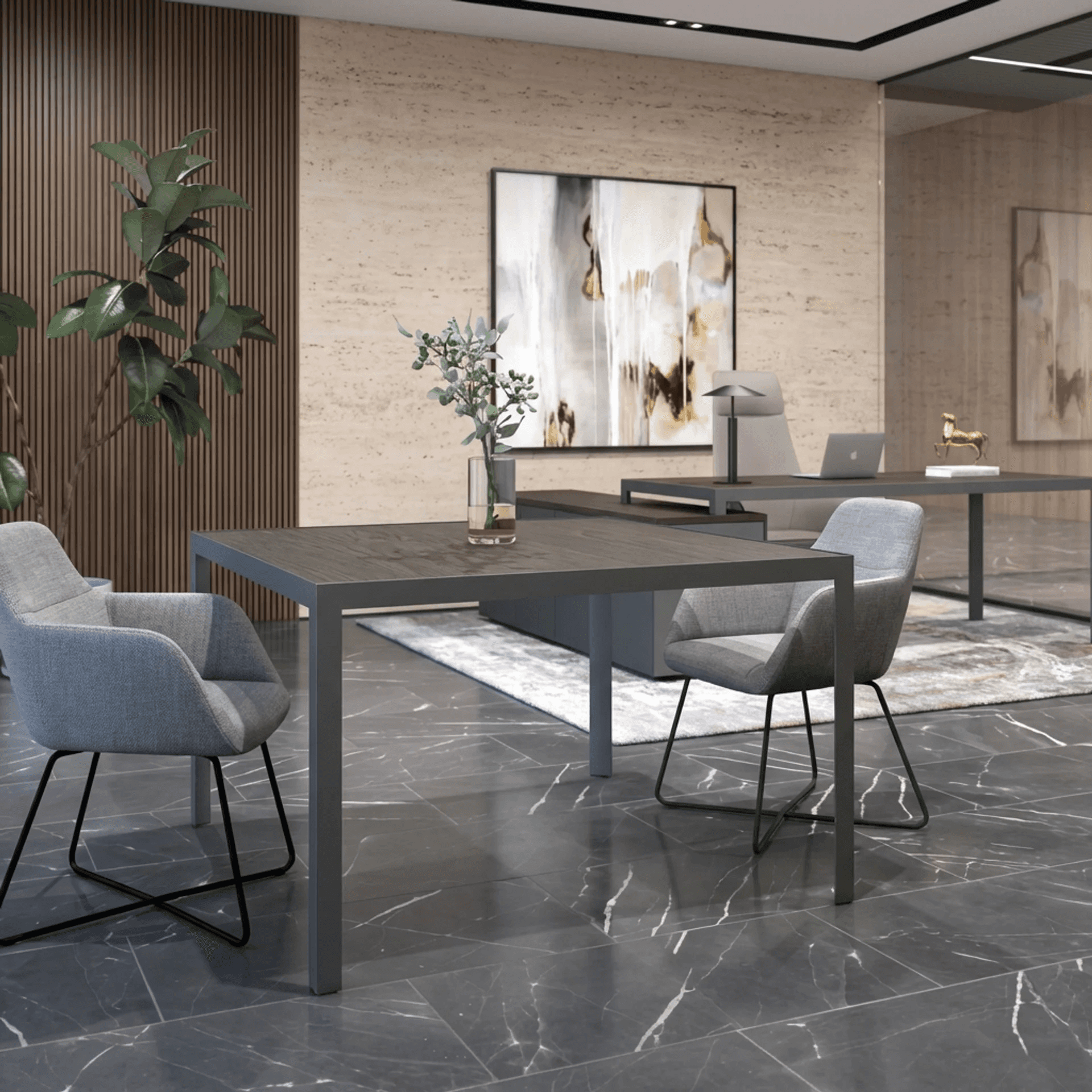 Mesa de diseño contemporáneo con estructura perimetral que brinda estabilidad y una estética moderna, ideal para áreas colaborativas, juntas o espacios operativos.